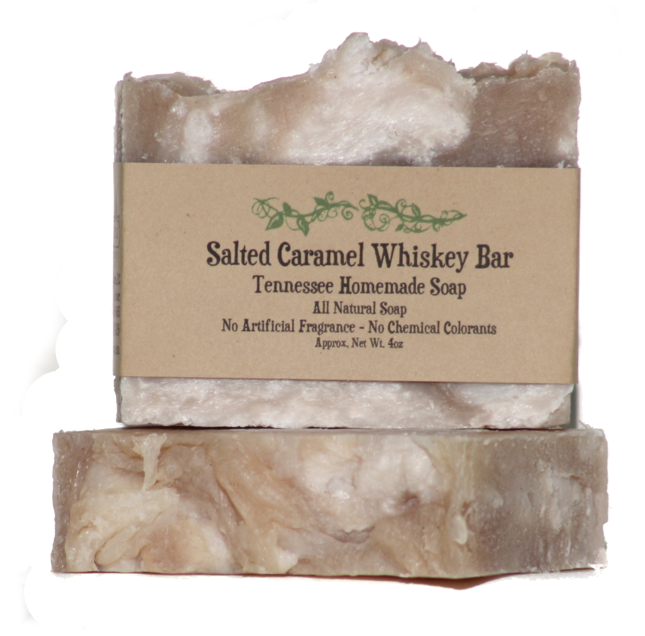 Saponified Soap Oils, Sea Salt, Andiroba Oil, Organic Coconut Oil, Mango Butter, Tennessee Legend Distillery Salted Caramel Whiskey, Unrefined Shea Butter, Calendula Powder, Slippery Elm Bark Powder, Natural Fragrance, Local Raw Honey, Vegetable Glycerin, Vit E