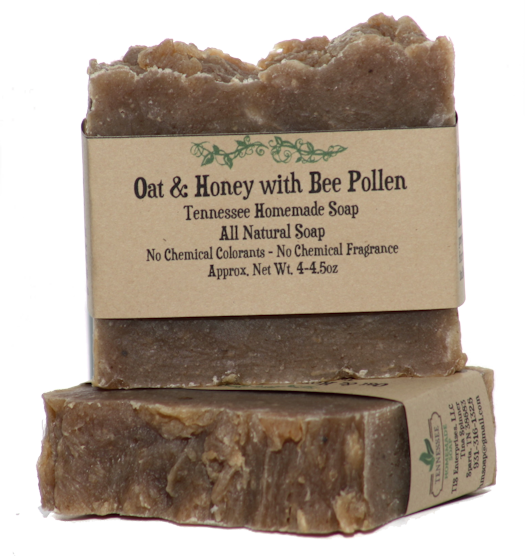 Saponified Soap Oils, Organic Oat Flour, Local Raw Honey, Argan Oil, Unrefined Shea Butter, Coco Butter, Extra Virgin Olive Oil, Vanilla Essential Oil, Sweet Orange Essential Oil, Ylang Ylang Essential Oil, Copaiba Balsam Essential Oil, Ground Bee Pollen, Vit E